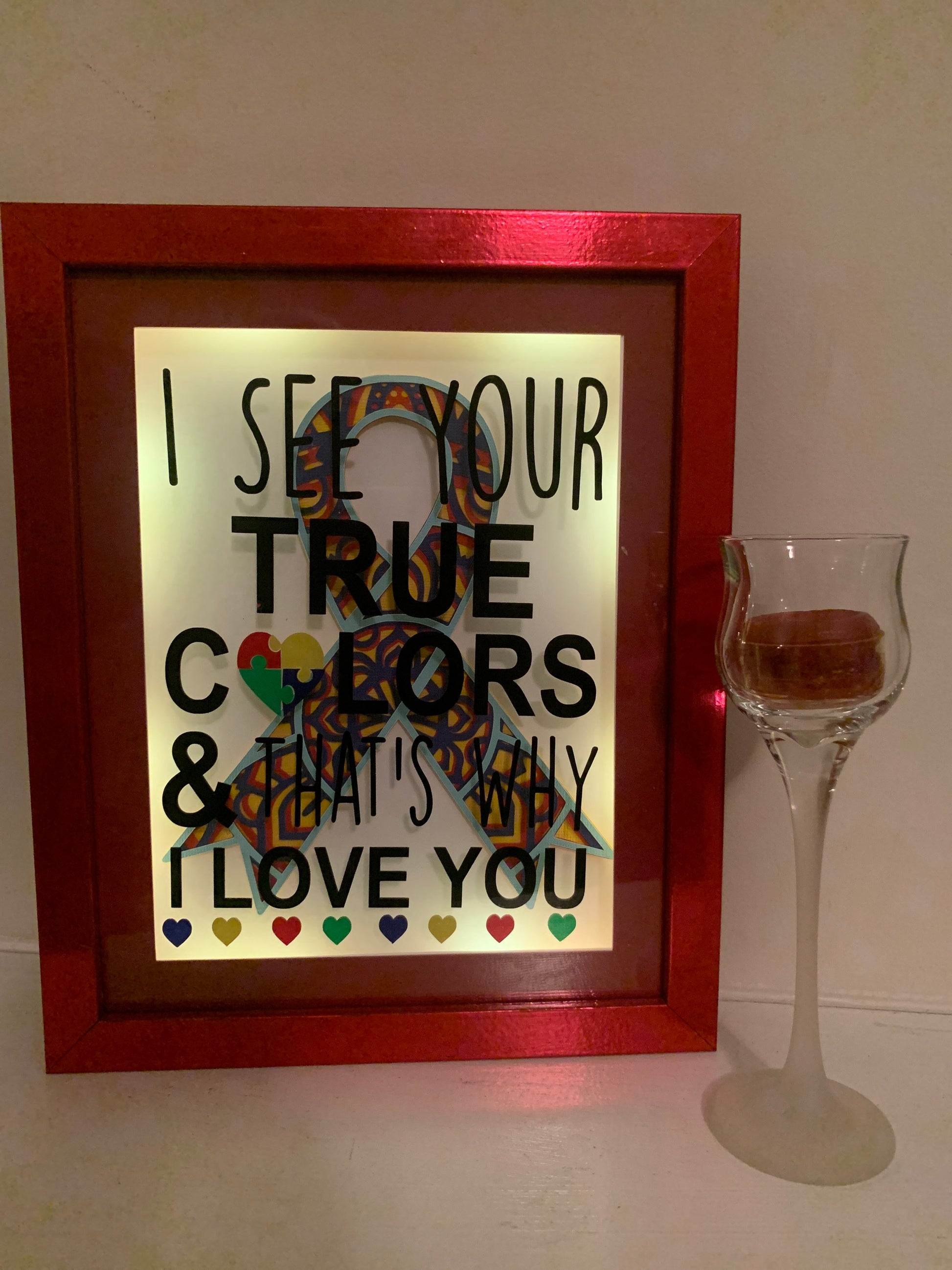 “Lighted Autism Awareness Ribbon” Shadow box.