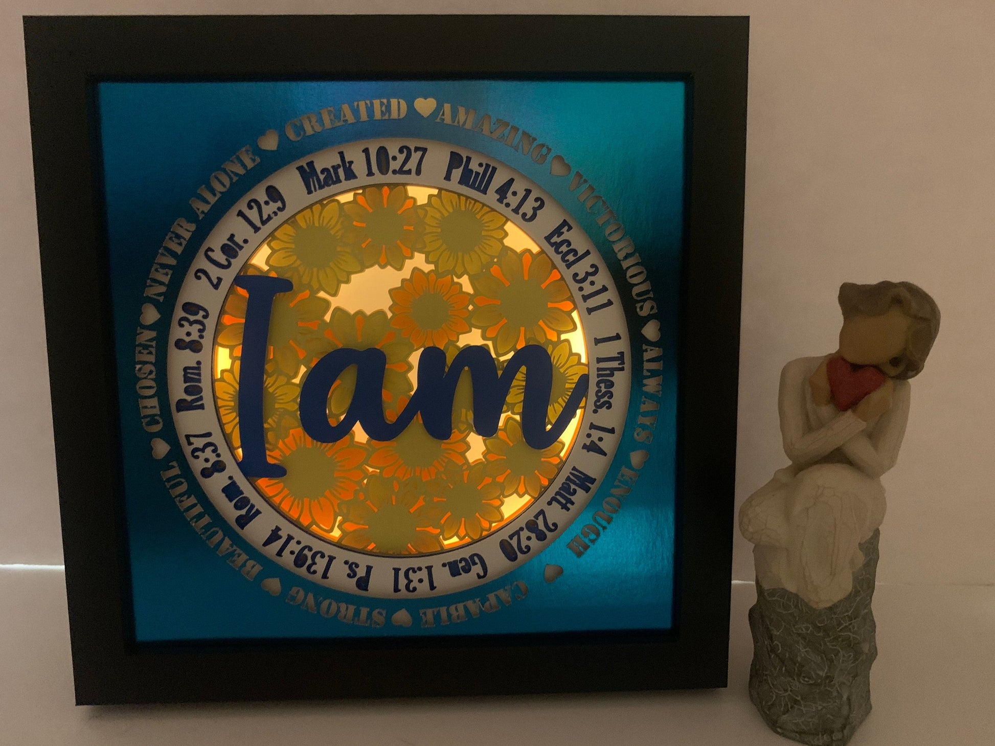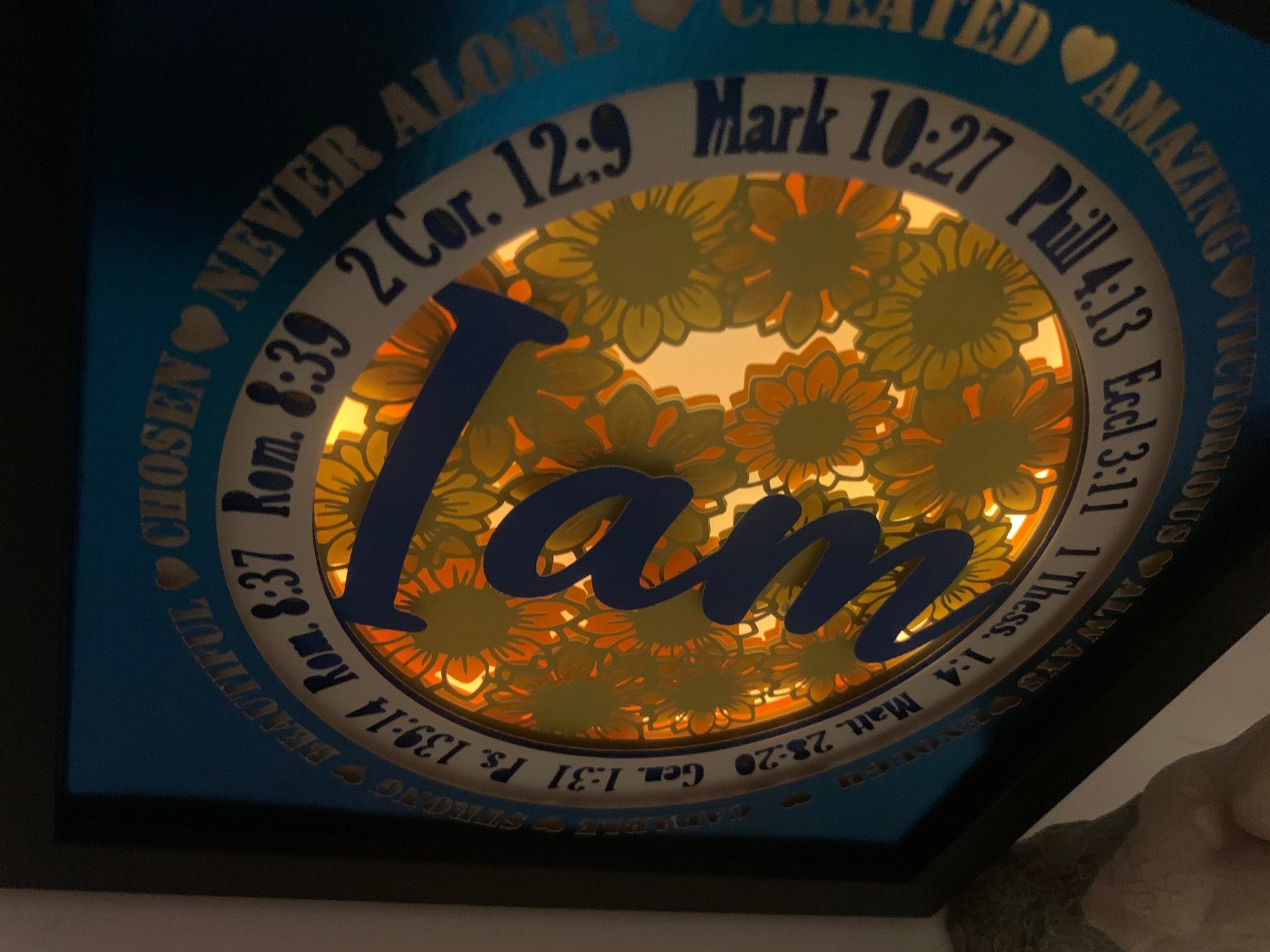 “Bible Verses and Daises” shadow box. This piece is amazing in person. It would make a great night light for any room.
