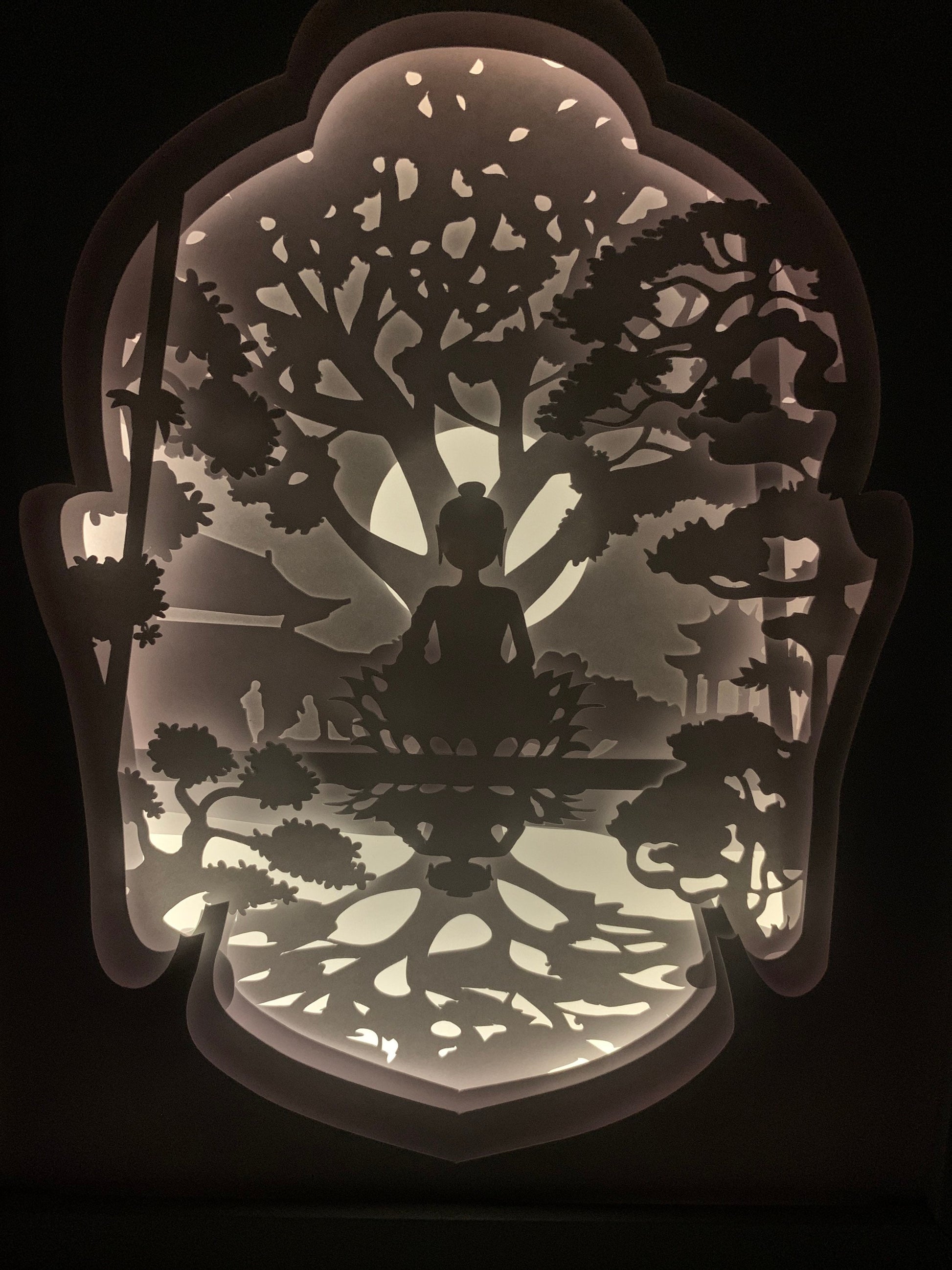 Buddha Lighted Shadow Box: Handmade LED Wall Art