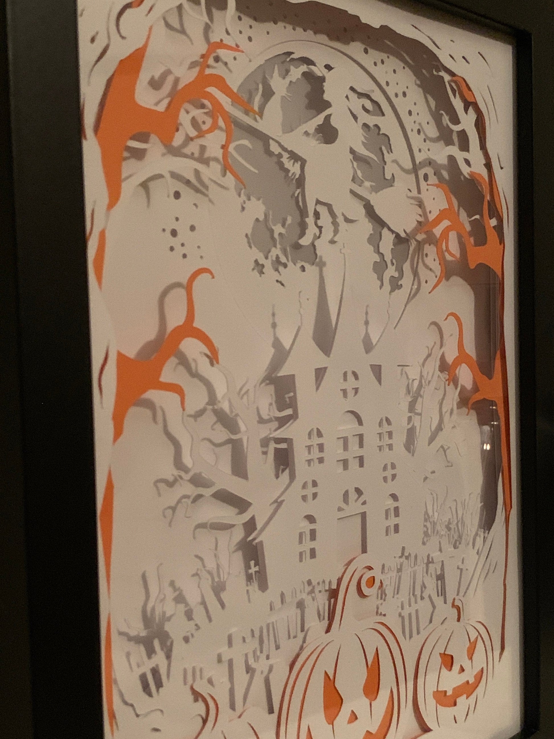 “Boo!! Happy Halloween ” lighted shadow box. The pictures do not do justice for the beauty of this piece.