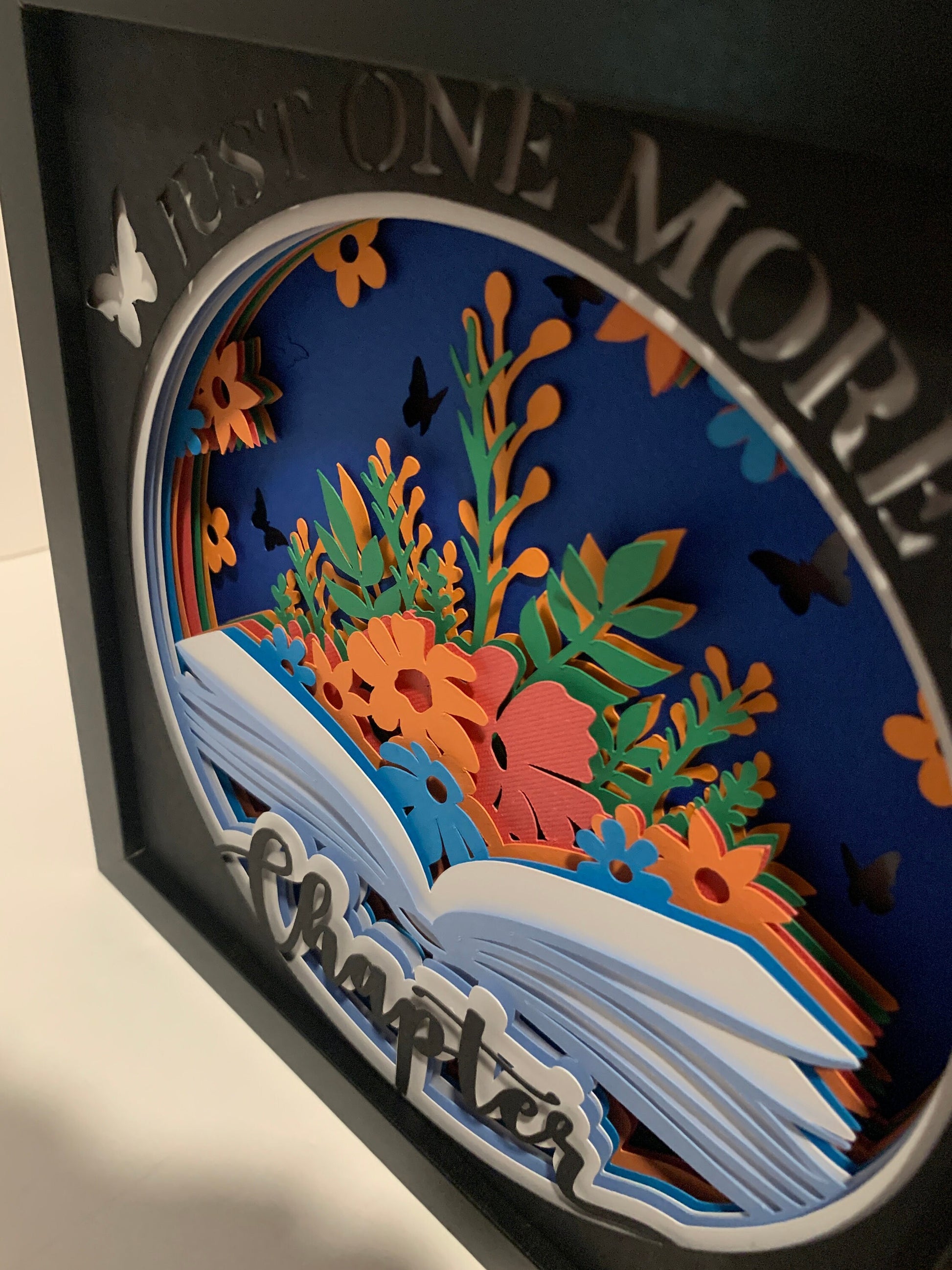 Just One More Chapter, book and flowers decor, Lightbox lighted shadow box, light lamp, home wall decor, great for book lovers!