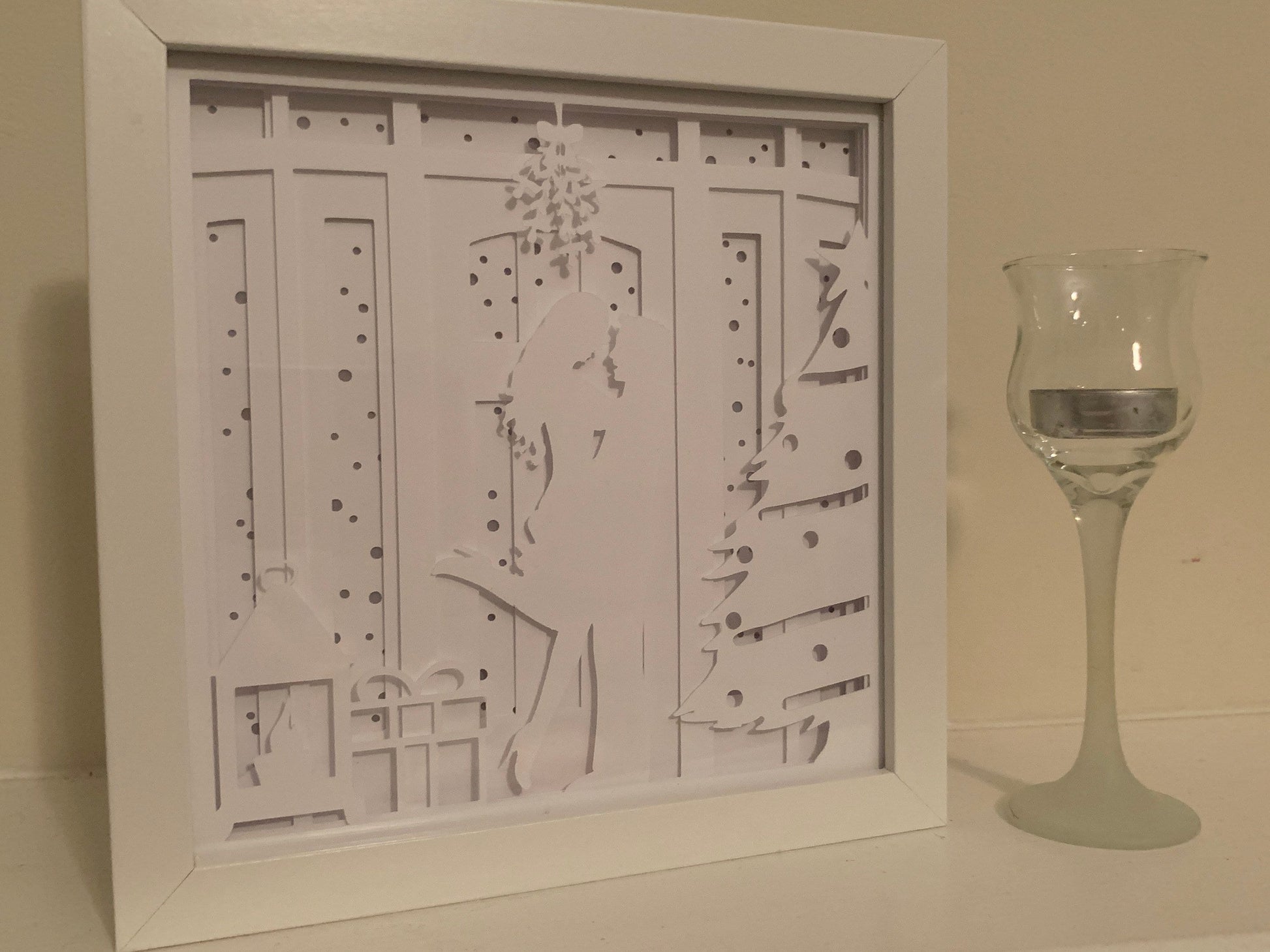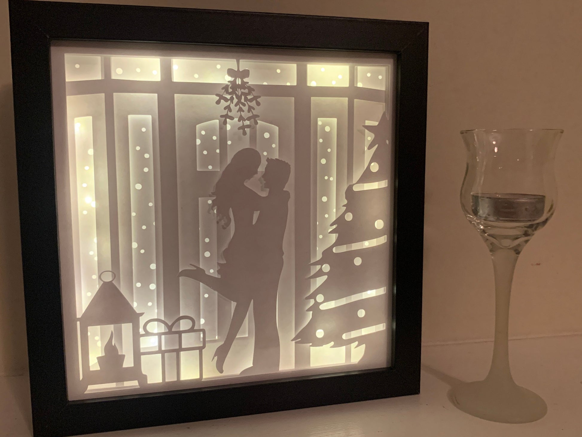 “Kissing under the Mistletoe” lighted shadow box. The pictures do not do justice for the beauty of this piece.