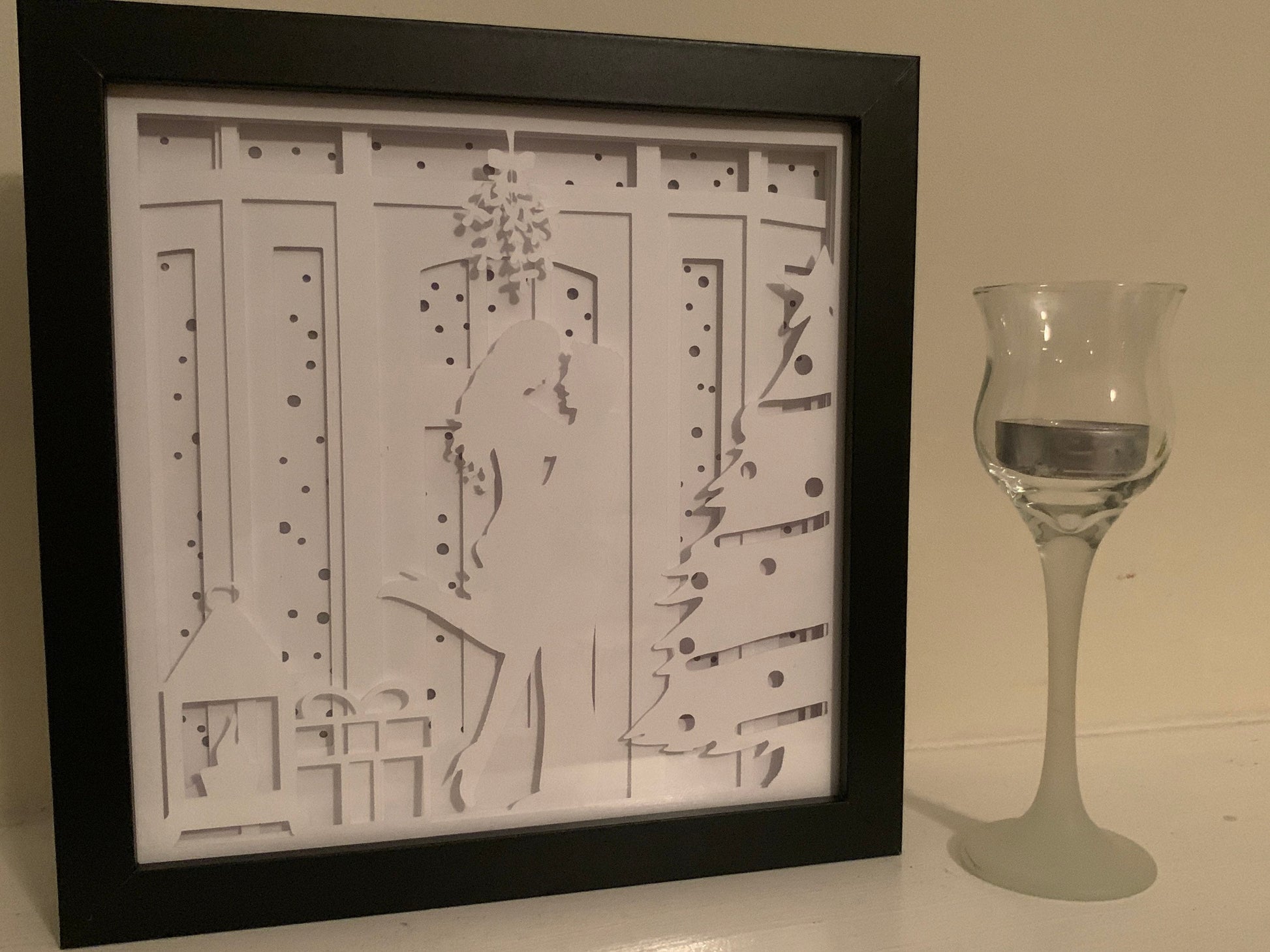 Kissing Couple Christmas Shadow Box: First Christmas LED Decor