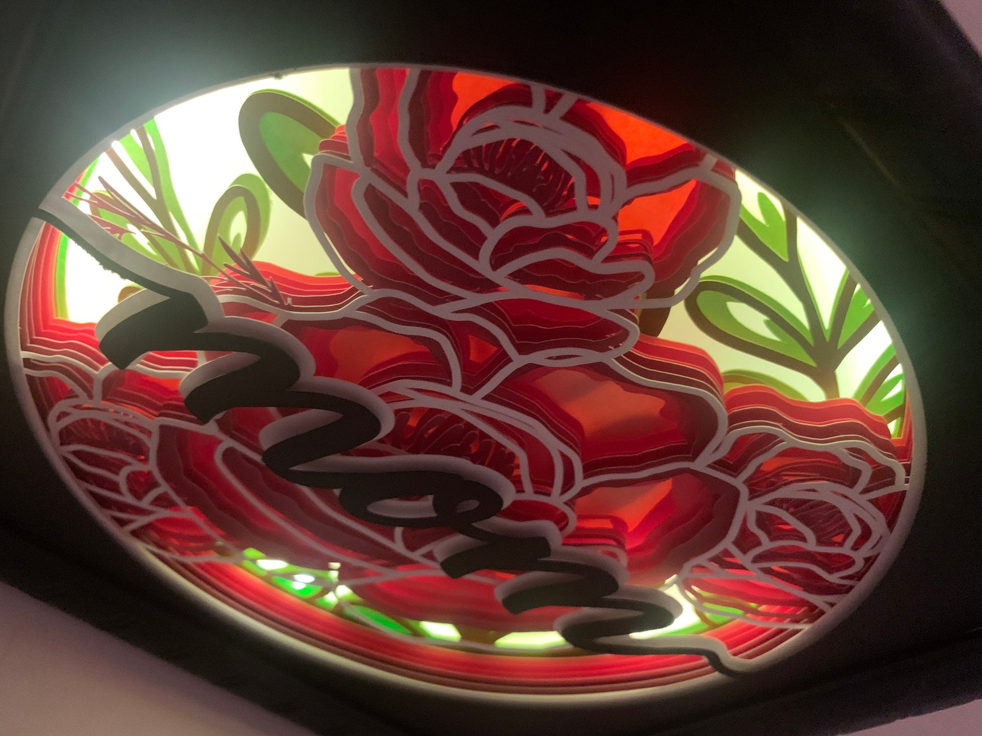 “Lighted Mom and Roses” shadow box. This piece is amazing in person. It would make a great night light for any room.