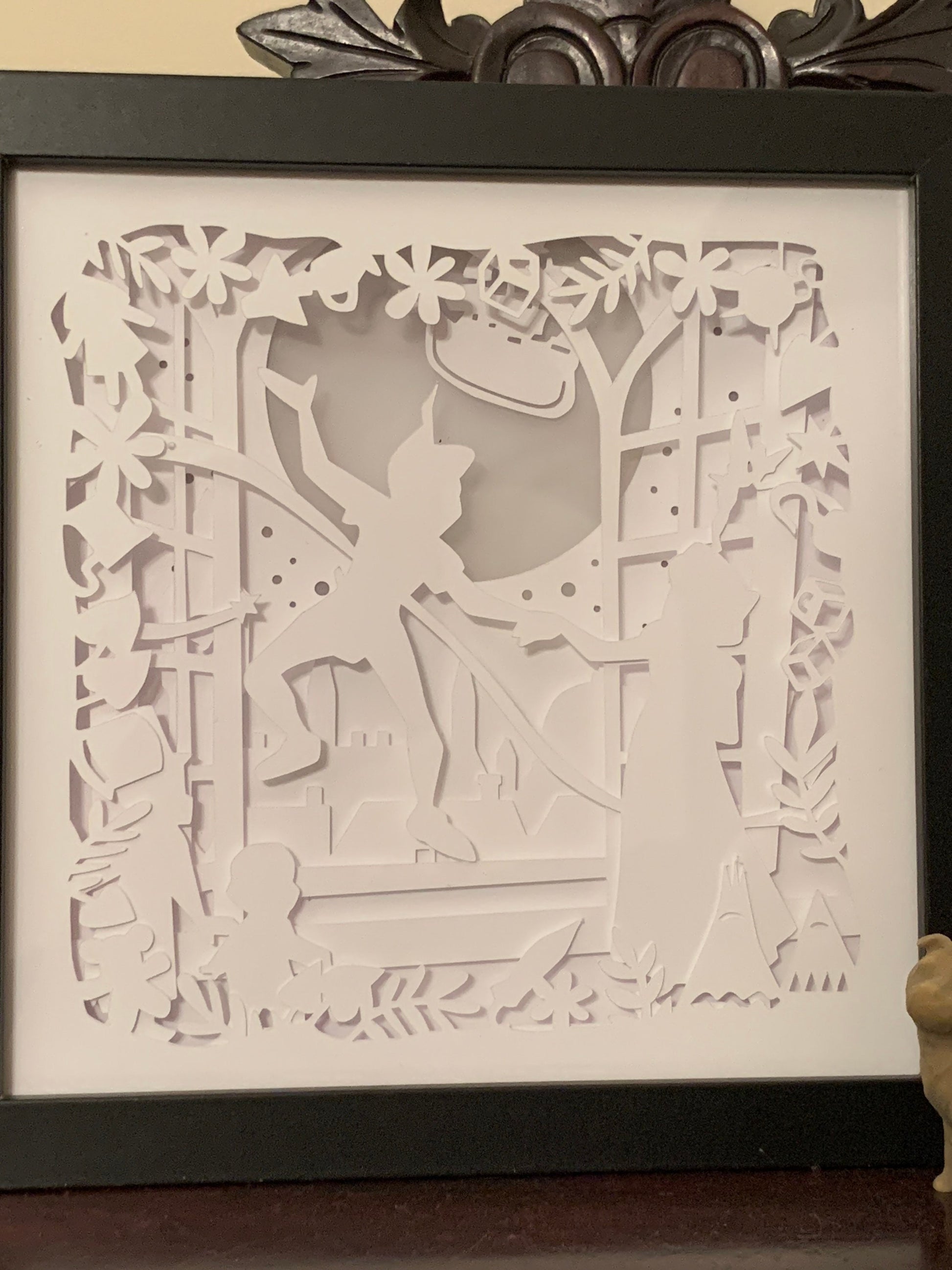 βPeter Pan, Tinkerbell and Wendy at the window β lighted shadow box. One of the memorable parts of the movies is commemorated in this piece. π§βοΈ