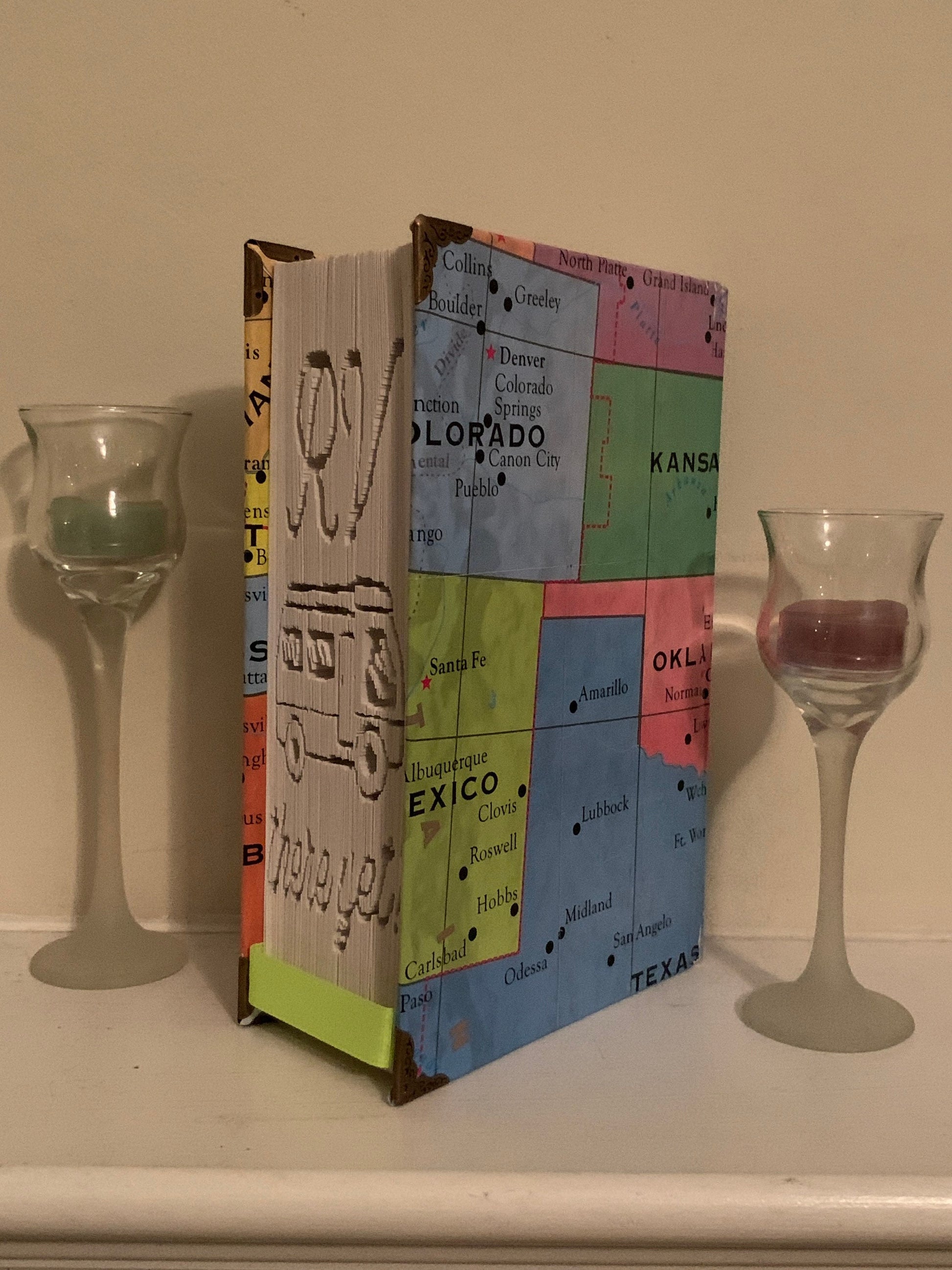 RV There Yet?, RV book, Travel Book, Decorative Book Fold, bookfold, Great Gift for traveler, USA map cover, birthday gift, RV Decor