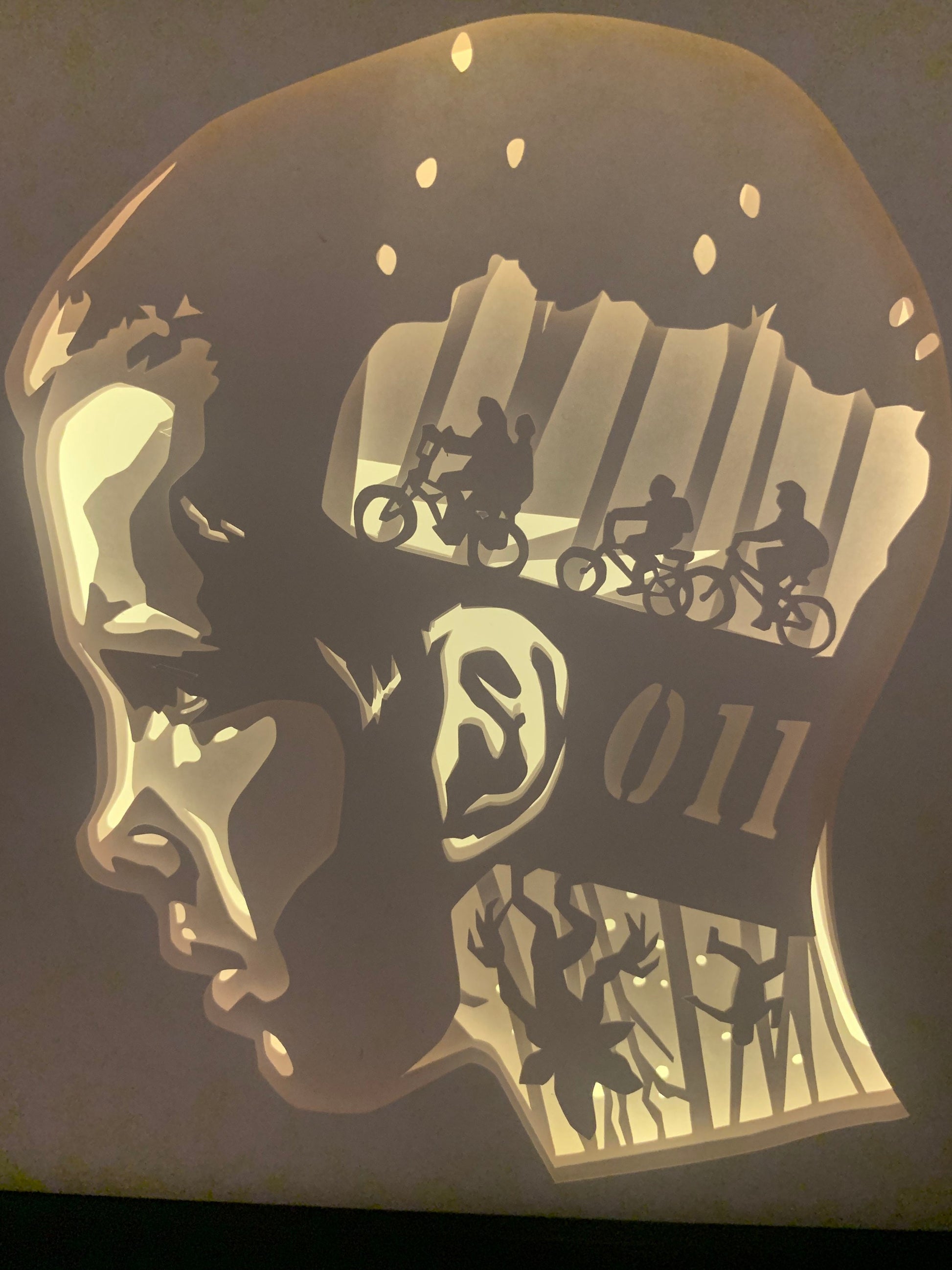 “Stranger Things” 011” lighted shadow box. The color of the frame or lights can be customized. The pictures do not do justice for the beauty of this piece.